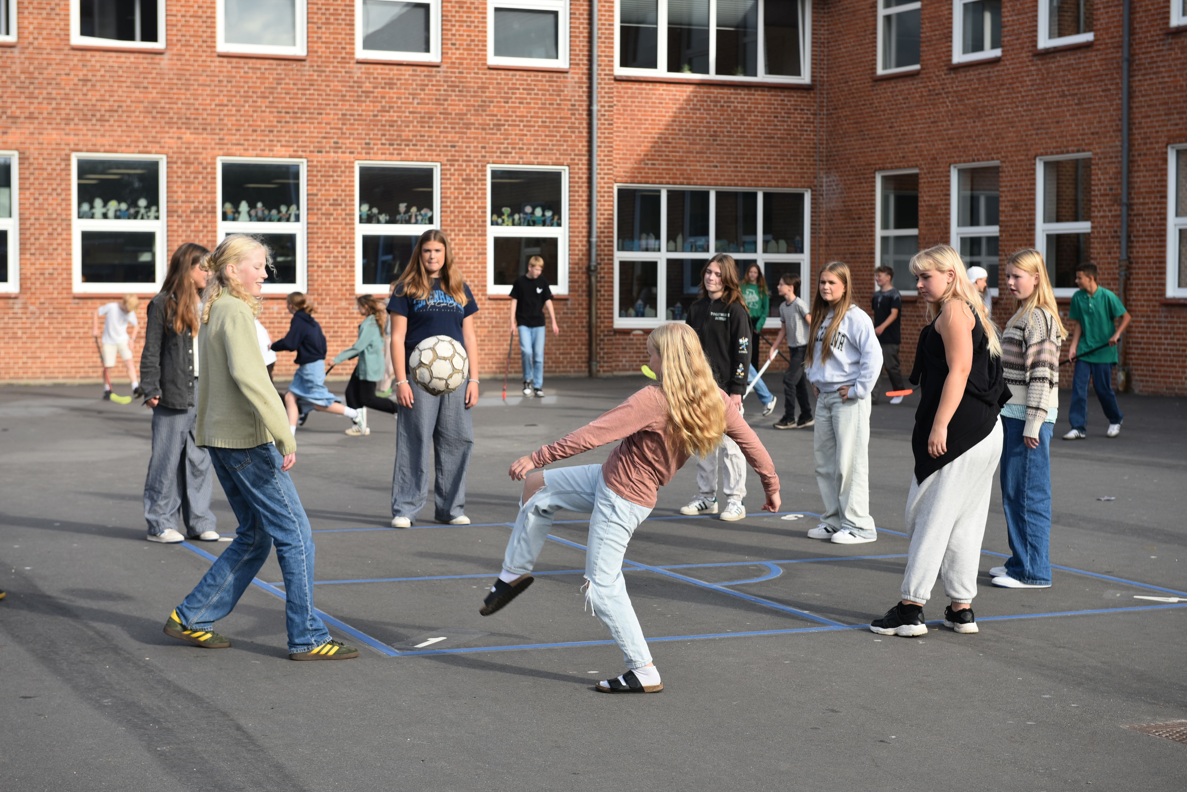 Fodboldspil er ikke tilladt i skolegården. Andre lege og spil med bolde er tilladt i skolegården.
