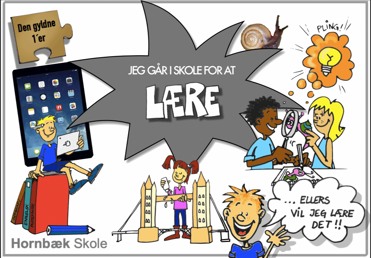 Hornbæk Skole vil tilbyde et højt fagligt niveau og skabe et miljø, hvor vi bliver dygtige sammen med de bedst mulige læringsbetingelser og deltagelsesmuligheder.
